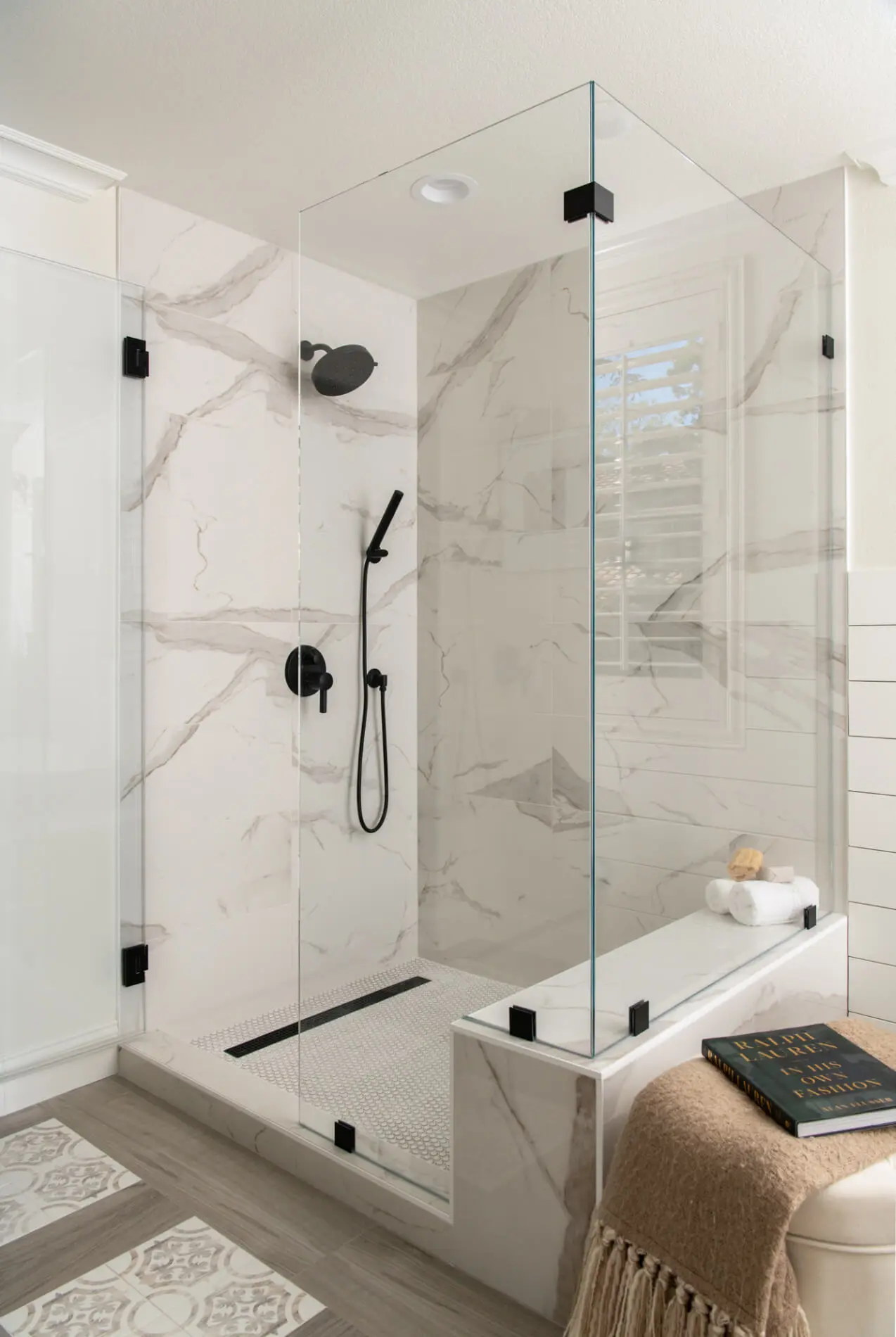 Whites, taupes, and soft grays build a foundation of calm. These tones age gracefully and complement both modern and coastal styles. Their subtle character gives the shower a timeless quality that fits seamlessly into Newport Beach homes.