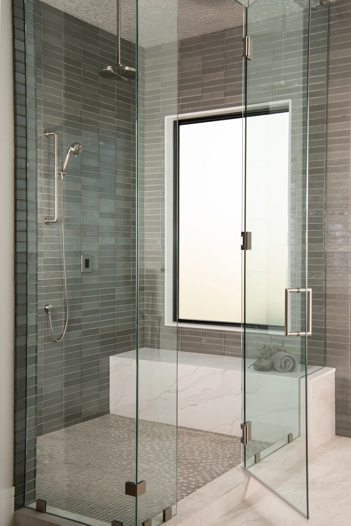 Whites, taupes, and soft grays build a foundation of calm. These tones age gracefully and complement both modern and coastal styles. Their subtle character gives the shower a timeless quality that fits seamlessly into Newport Beach homes.